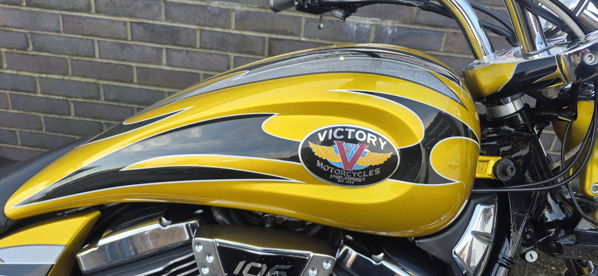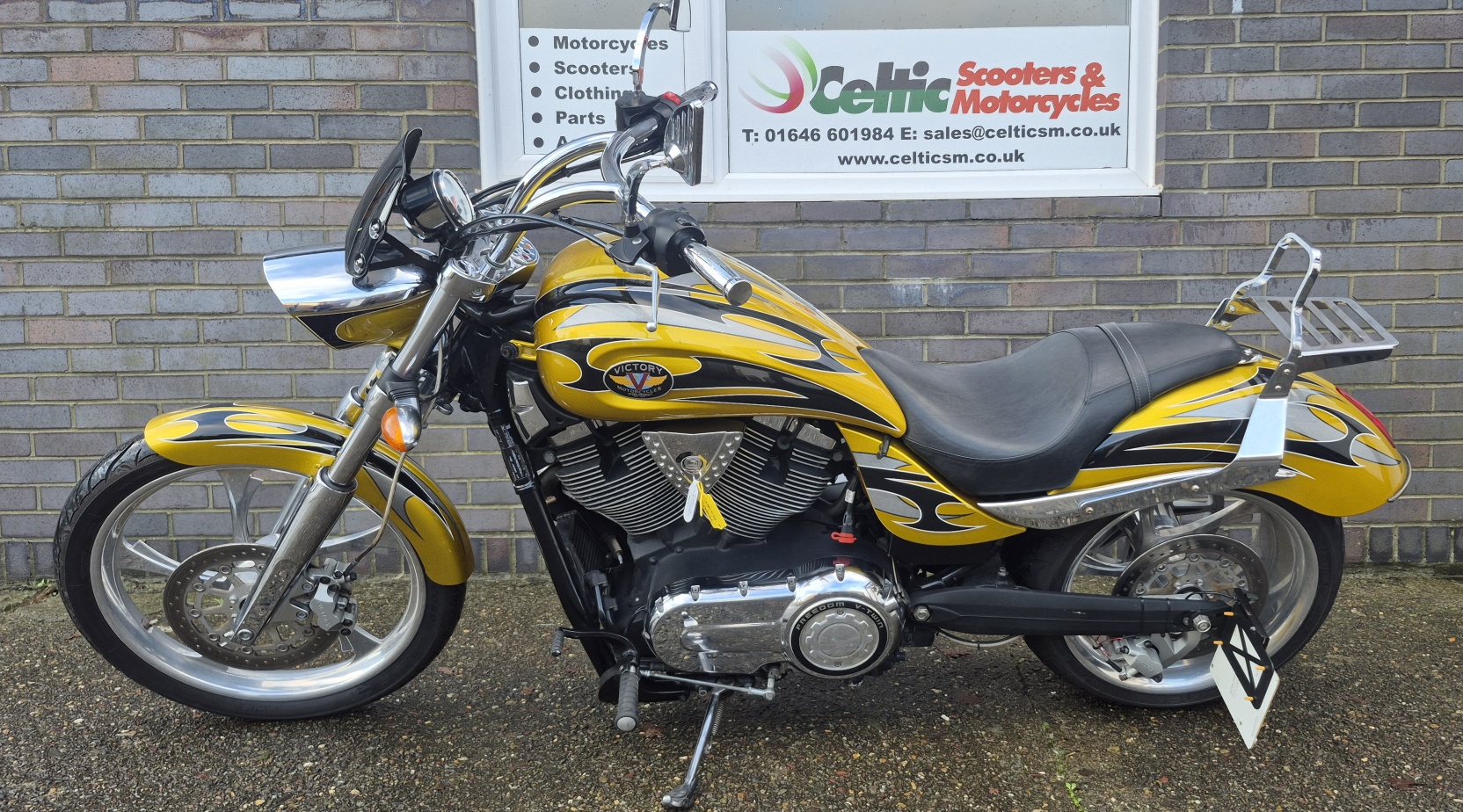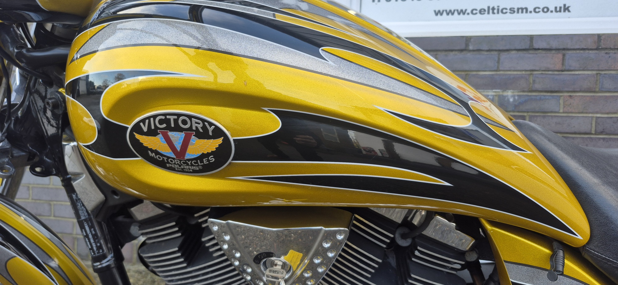 Finished in stunning metallic gold, highlighted with black and silver tribal style stripes running through the fenders and tank.