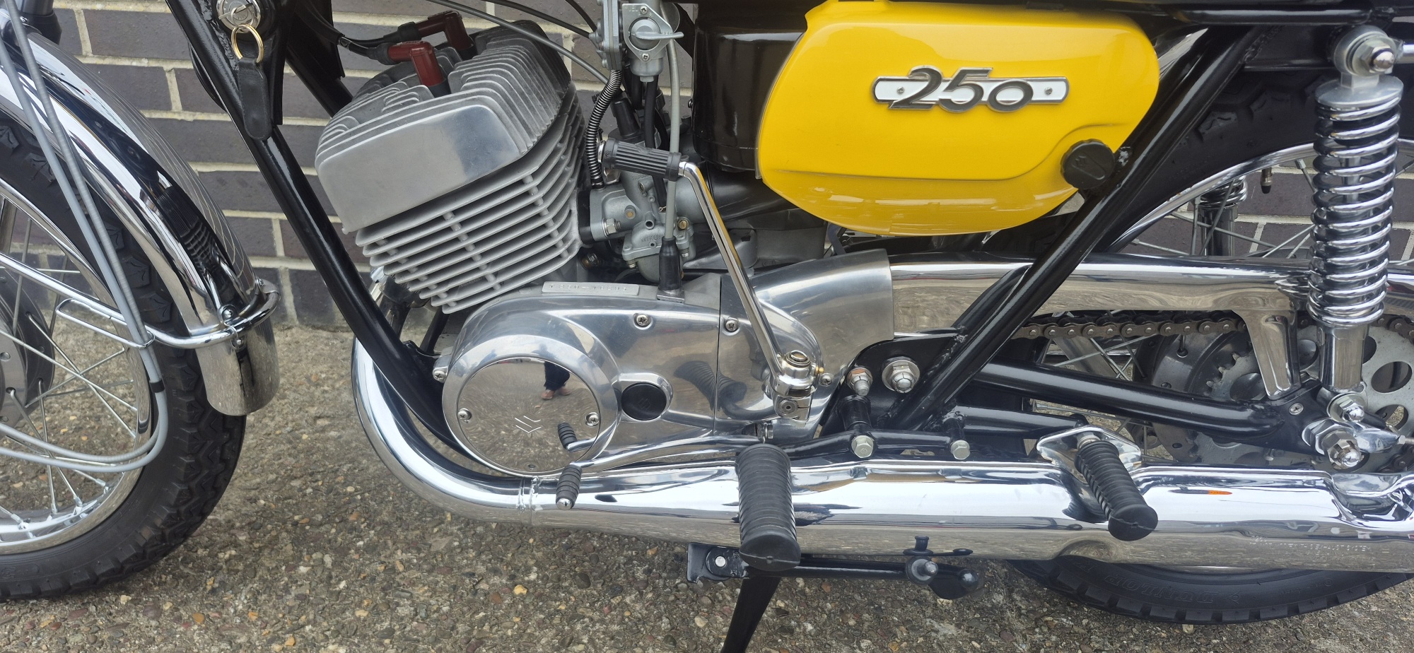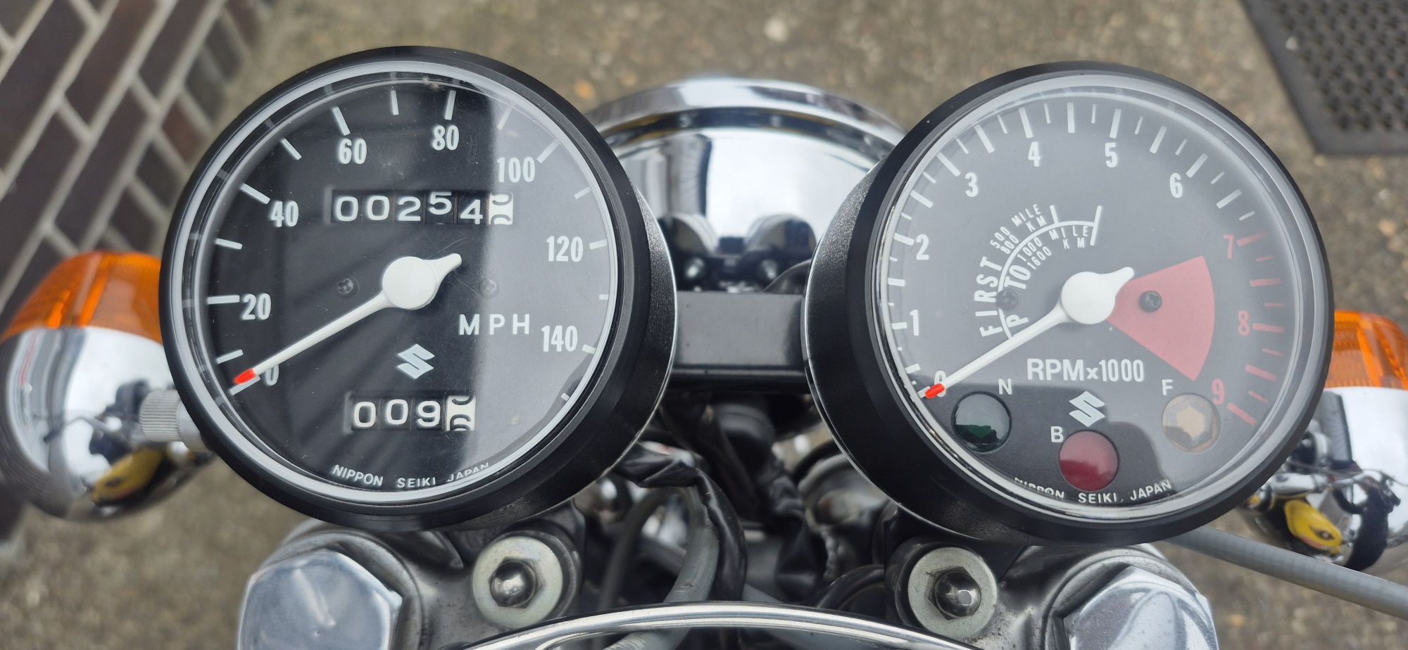 The clocks are new old stock and are displaying 254, the mileage since the engine was rebuilt and the new clocks fitted, so the Hustler still requires running in.