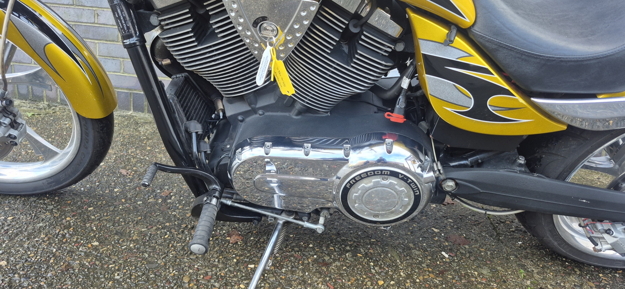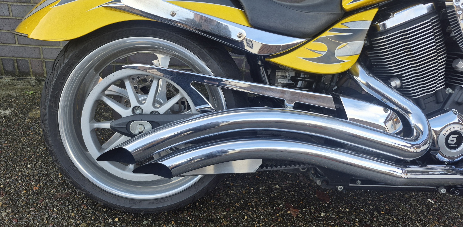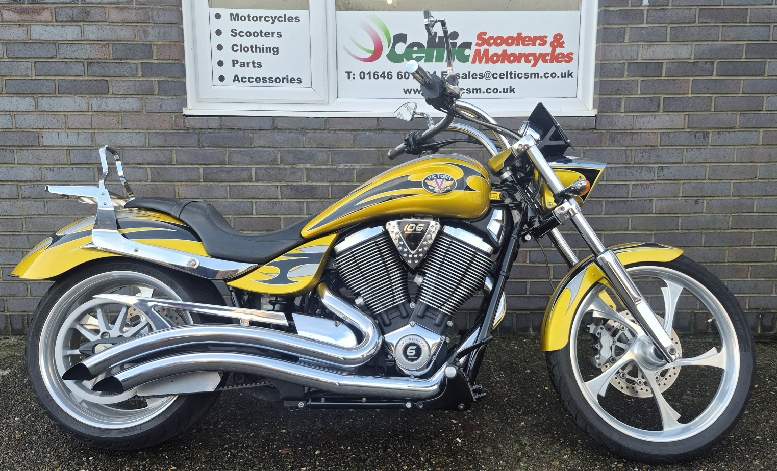 Finished in stunning metallic gold, highlighted with black and silver tribal style stripes running through the fenders and tank.